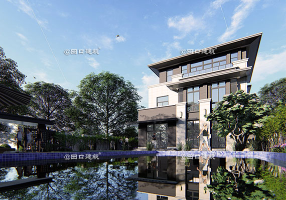 占地面積 131.7㎡ 土建造價 40.0萬 三層新中式小別院