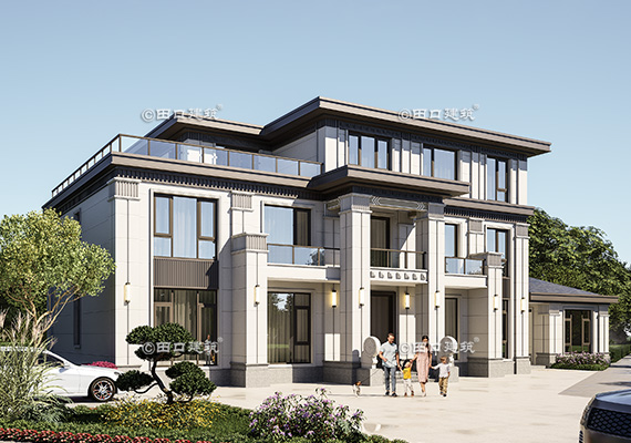 占地面積 142.4㎡ 土建造價 60.0萬 帶底商三層美式別墅